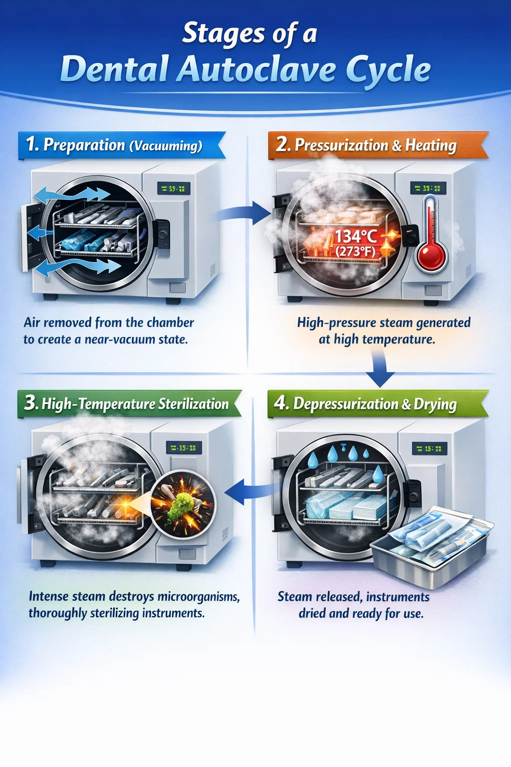 I dtéarmaí simplí, oibríonn uathchláibh fiacla mar leagan uasghrádaithe de chócaire brú tí. Úsáideann siad meascán de theocht ard, ardbhrú, agus gal chun éillithe micreascópacha ar uirlisí máinliachta a dhíchur go críochnúil.